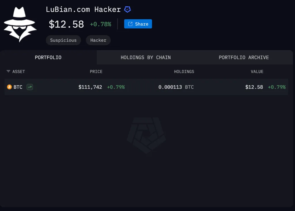 На счету, который Arkham идентифицирунт как принадлежащий хакеру LuBian, остались активы на $12.